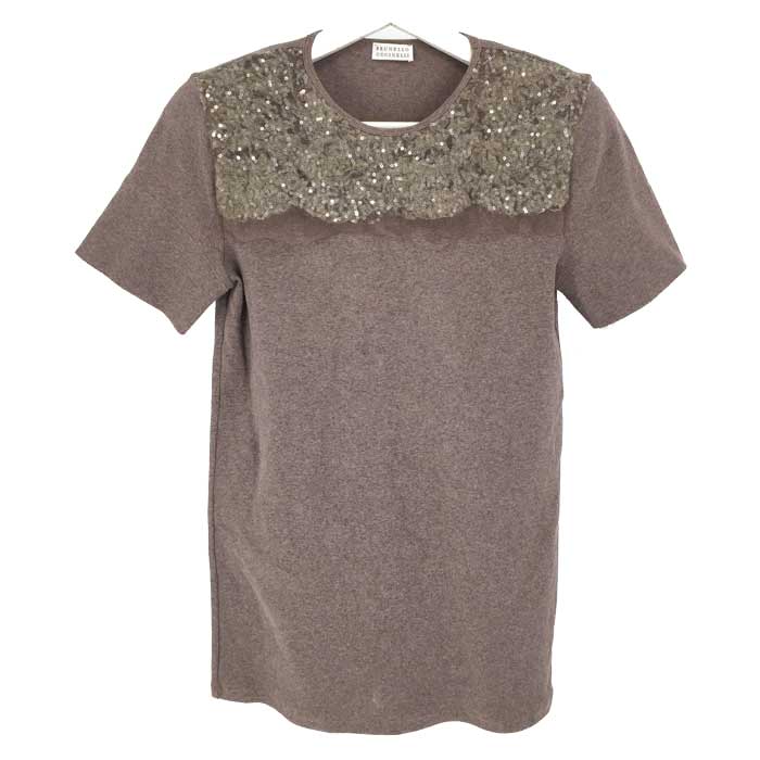 ブルネロクチネリ BRUNELLO CUCINELLI カットソー 半袖ニット スパンコール装飾 肩パッド付き XXL ブラウン【中古】
