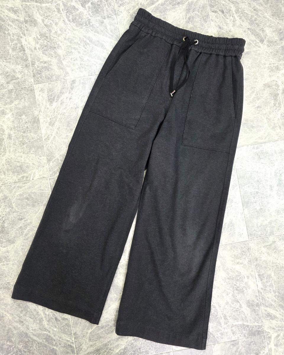 【中古】 BRUNELLO CUCINELLI(ブルネロ クチネリ) モニーレ付き 装飾 コットン ワイド パンツ レディース衣類 パンツ ダークグレー