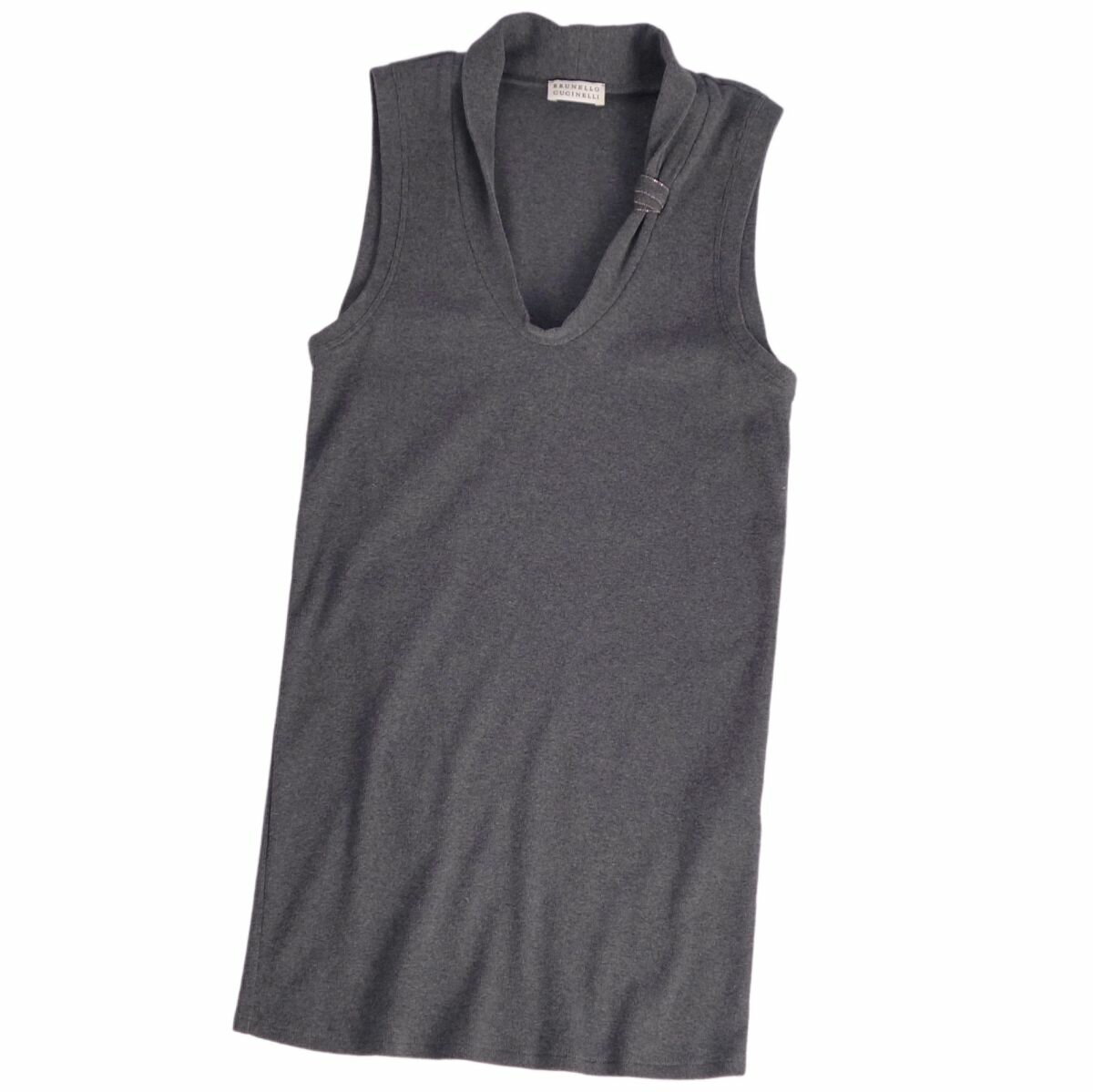 【美品】ブルネロクチネリ BRUNELLO CUCINELLI ニット セーター ノースリーブ コットン トップス レディース イタリア製 M グレー【中古】