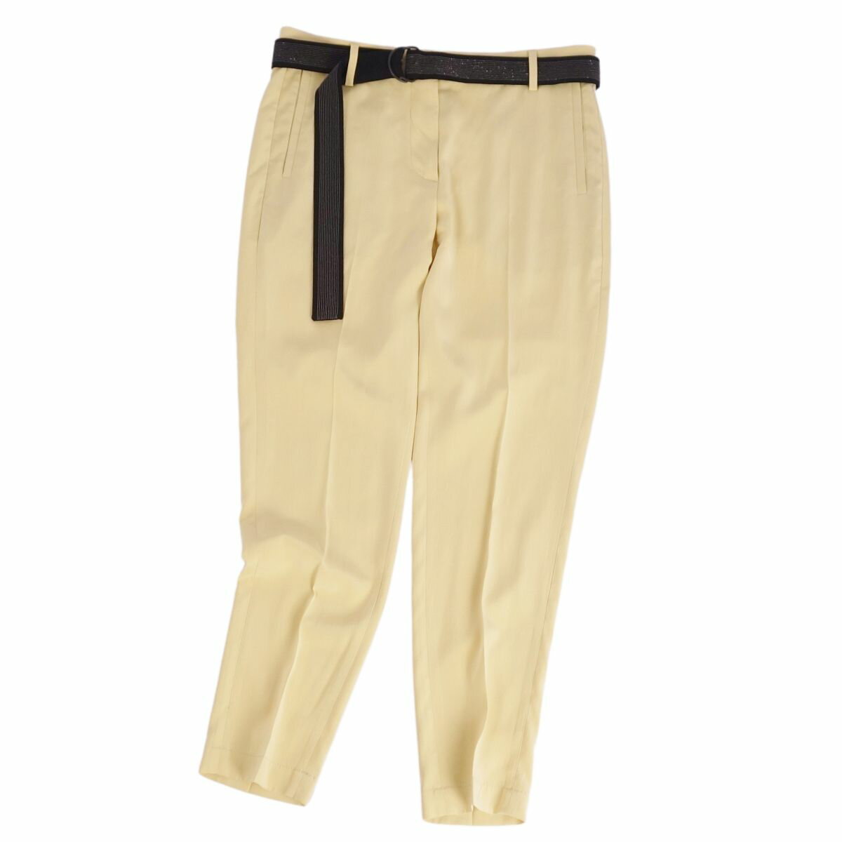 【美品】ブルネロクチネリ BRUNELLO CUCINELLI パンツ ロングパンツ ベルト付き シルク ボールチェーン ボトムス レディース イタリア製 40(M相当) イエロー【中古】