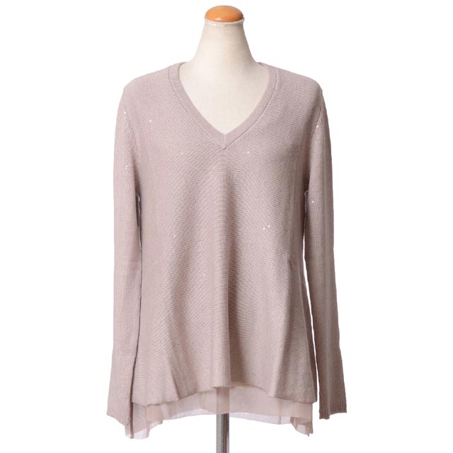 ブルネロクチネリ (Brunello Cucinelli) チュール付きVネックセーター カシミアシルク ピンク dt521315211 送料無料 【正規取扱】