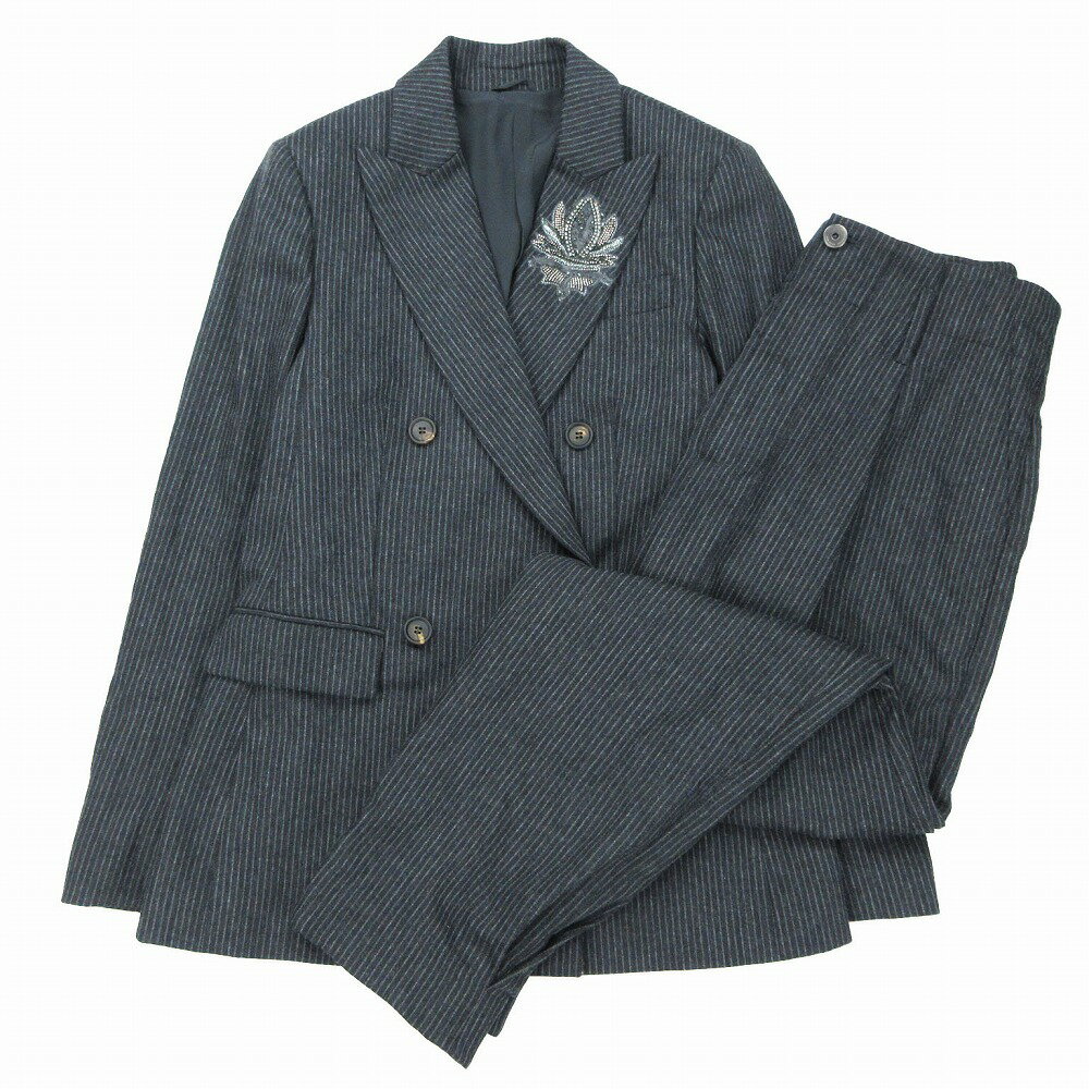 極美品 BRUNELLO CUCINELLI ブルネロクチネリ ストライプ柄 スーツ セットアップ ビジュー グレー サイズM-L レディース 【中古】