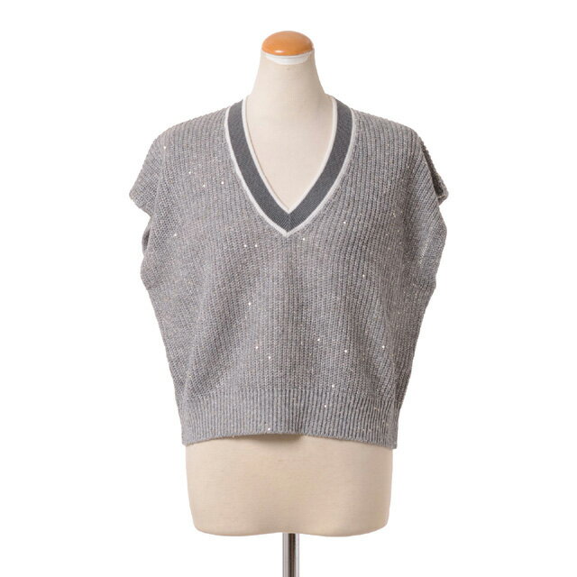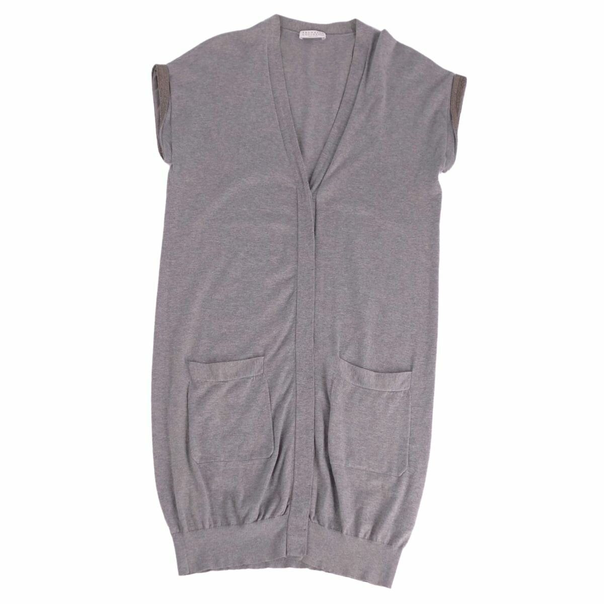 ブルネロクチネリ BRUNELLO CUCINELLI カーディガン コーディガン ニット ノースリーブ コットン トップス レディース イタリア製 L グレー【中古】