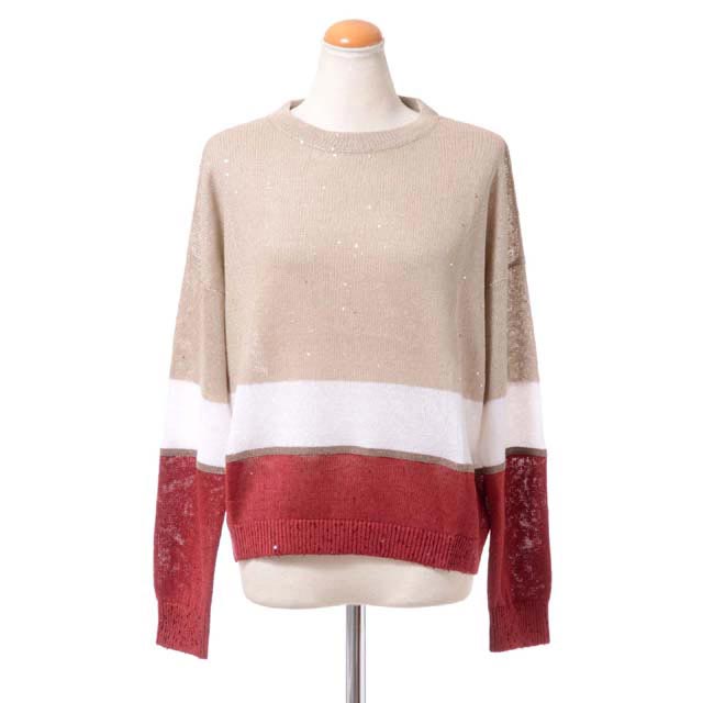 ブルネロクチネリ (Brunello Cucinelli) ラウンドネックビジューセーター リネンシルク ベージュホワイトレッドm10551910dcj468 2019SS レディース春夏新作 送料無料 正規取扱