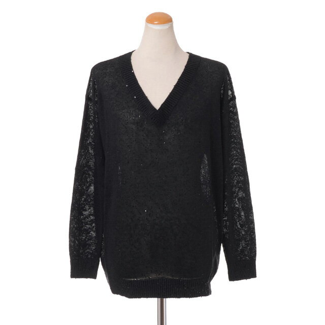 ブルネロクチネリ (Brunello Cucinelli) Vネックセーター リネンシルクニット ブラックm10550222cj101 2023SS レディース春夏新作 送料無料 正規取扱