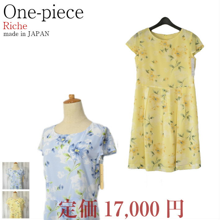 半額サーチ400点★日本製 花柄 シフォン キャップスリーブ ワンピース Riche 273212 レディース 春/夏/秋 【小】膝下丈フレアライン 水色 イエロー シフォン ギャザー フォーマル Aライン カジュアル 半額 \定価から50%OFF/
