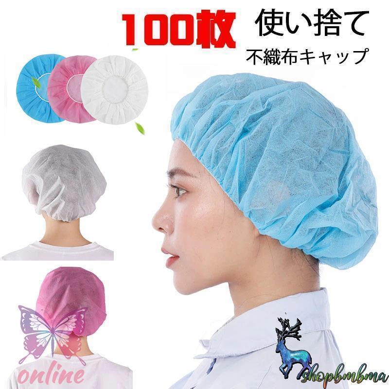 100枚入り ヘアキャップ 不織布キャップ 使い捨てキャップ クリーンキャップ ケアキャップ 帽子 防護キャップ 男女兼用 飛沫 粉塵予防 毛髪落下防止