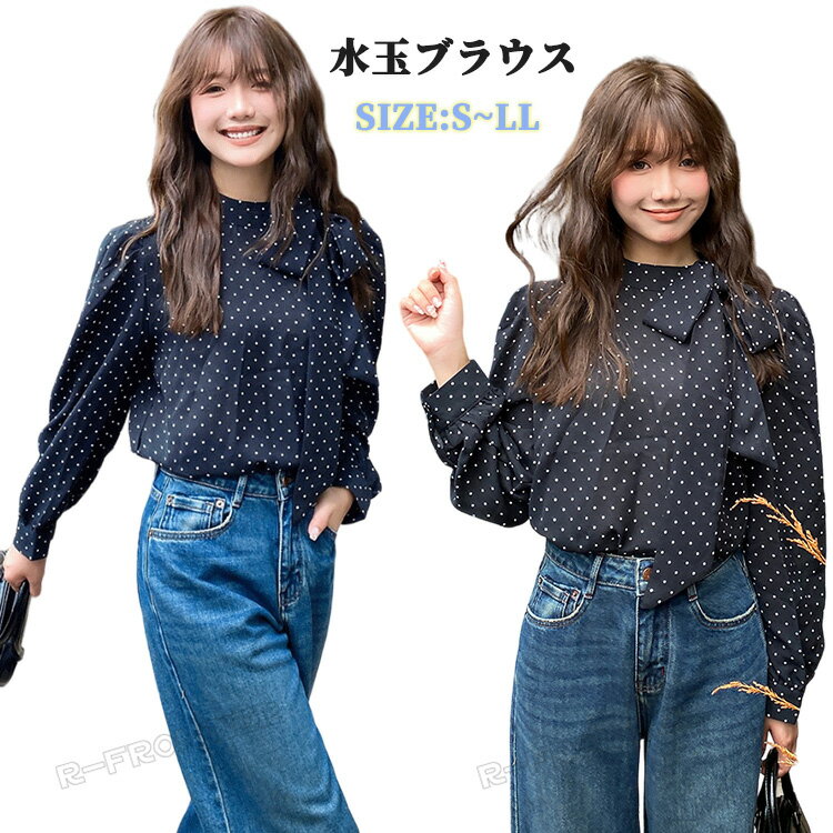 卒業式 女の子 ブラウス レディース 卒服 韓国 トップス 長袖 春秋 可愛い お洒落 薄手 ドット柄 ラウンドネック キャップスリーブ ゴム入り フロント ボタン 前開き バック 切り替え 着回し ドット柄 ブラウス カジュアル 発表会 通勤 通学