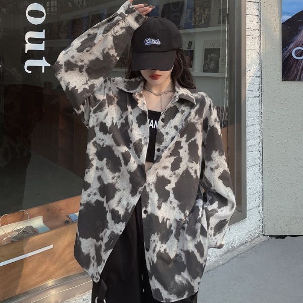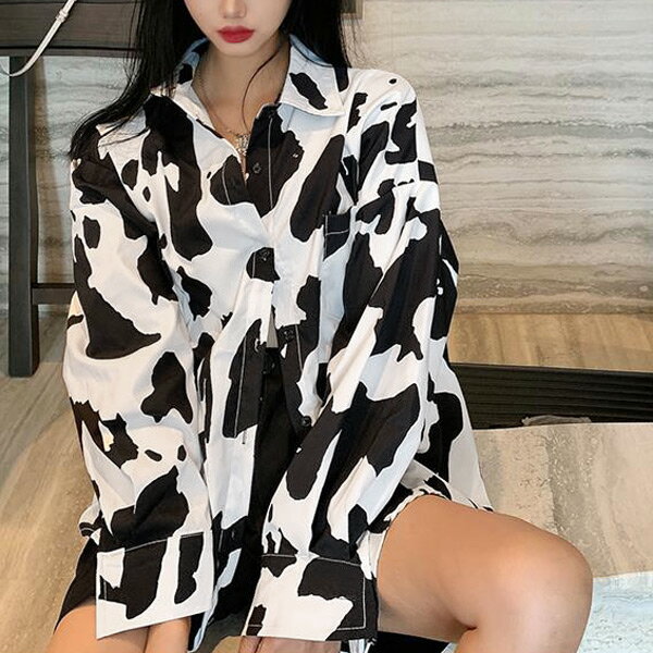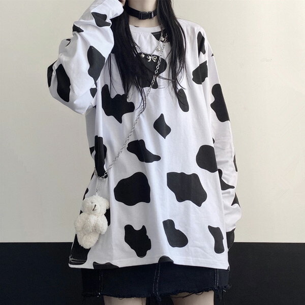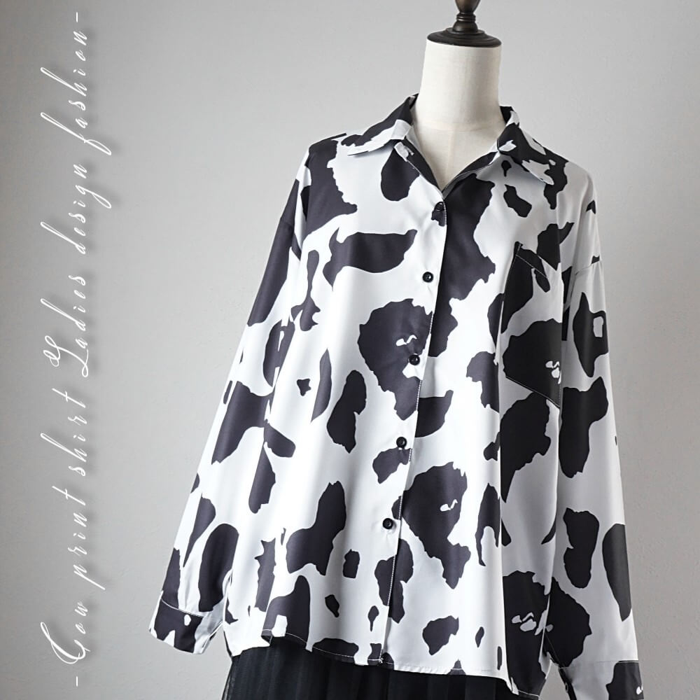 10%オフクーポン 【3連休も発送】 大きいサイズ 牛柄のかわいい 総柄 シャツ 長袖 トップス ブラウス ガーリー ホワイト 白 黒 アニマル柄 カウ 原宿系 韓国 春夏 秋冬 個性的 ダンス衣装 オーバーサイズ ロング 大人 可愛い おしゃれ 送料無料 ブラックフライデー