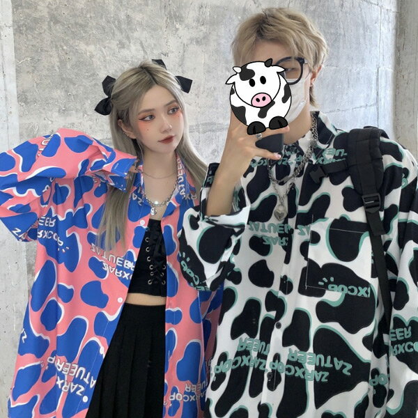 柄シャツ COW柄 ロゴ 牛柄 ビッグシルエット 長袖シャツ 春服 秋服 シャツ ダンス 衣装 ヒップホップ コスチューム 韓国ファッション 大きいサイズ 個性的 服