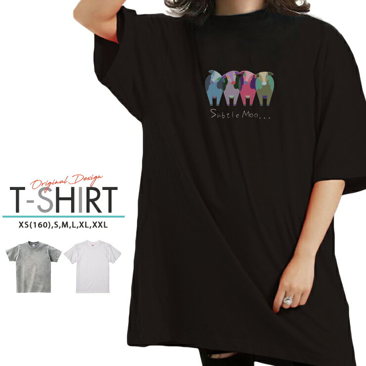 Tシャツ レディース メンズ クルーネック 丸首 綿 半袖 カットソー 大人かわいい オシャレ かっこいい ペア カップル おそろ リンクコーデ 牛 ウシ アニマル カラフル Subtle moo... モー cow 動物