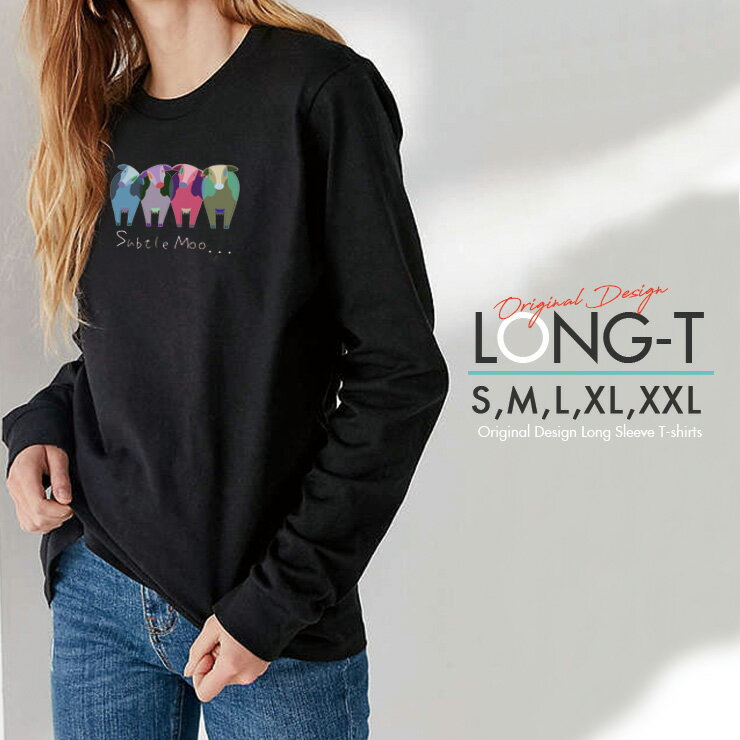 Tシャツ ロンT クルーネック 丸首 綿 長袖 カットソー レディース カットソー S M L XL XXL メンズ シンプルだから合わせやす 大人かわいい オシャレ ペア カップル リンクコーデ 牛 ウシ アニマル カラフル Subtle moo... モー cow 動物