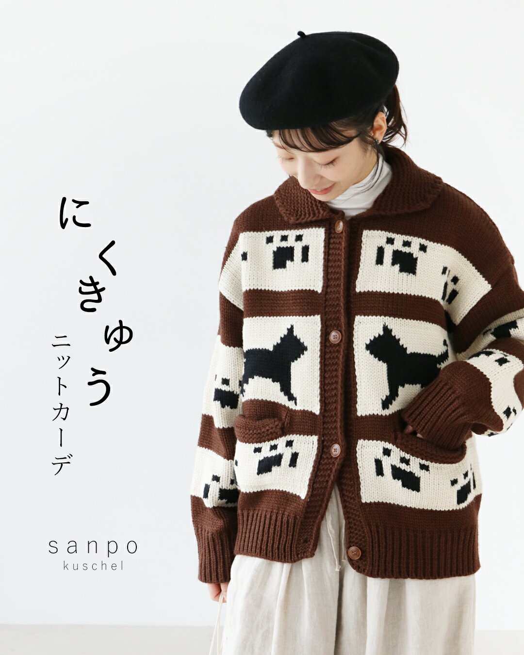 返品交換送料無料 ニット トップス カーディガン【肉球ニットカーディガン】ニットカーデ 長袖ニット 前開きニット カウチン風 アニマル 猫 犬 足跡 暖かい 秋 冬 ブラウン 30代 40代 50代 60代 sanpo【b14073ps】