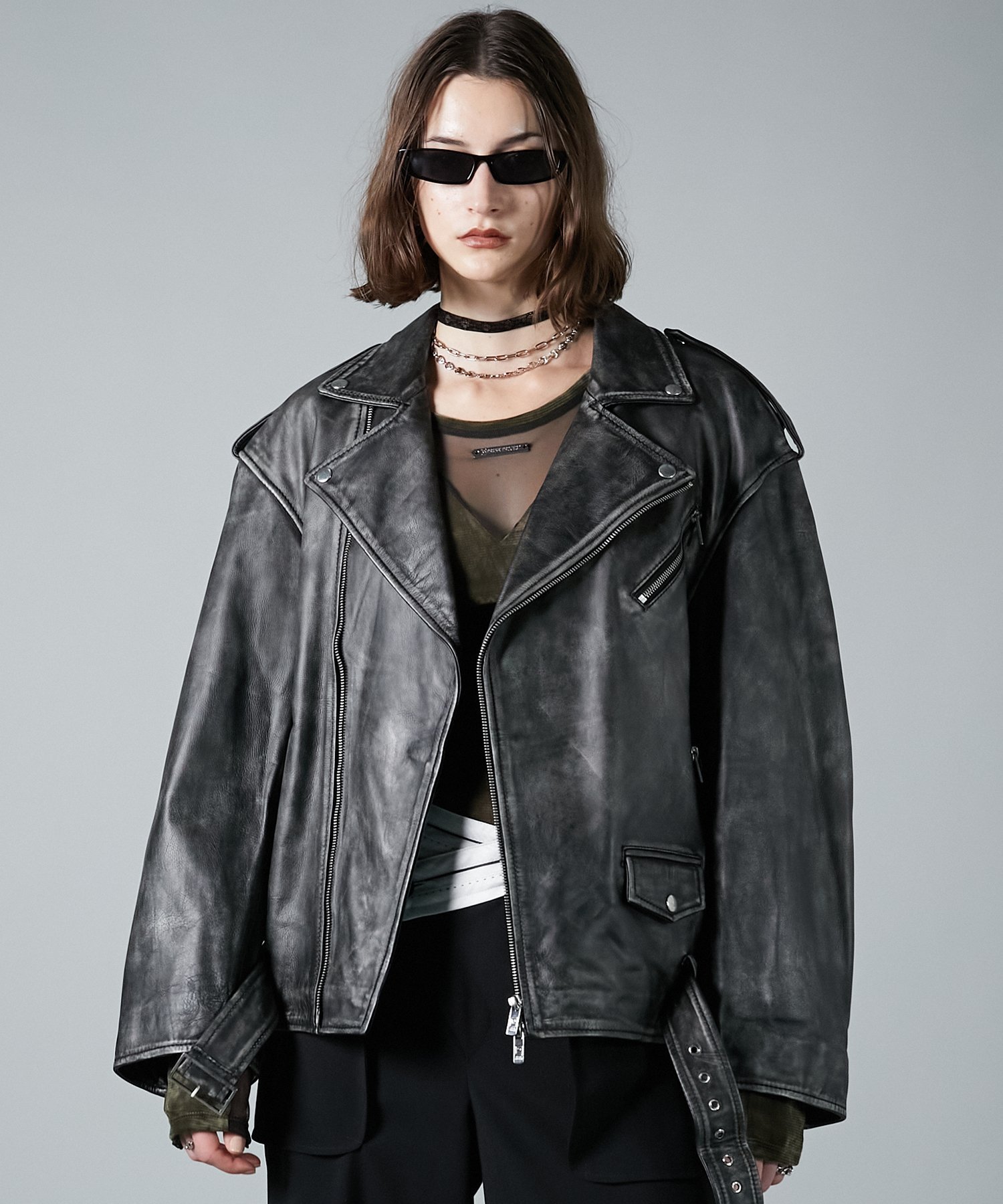 PRANK PROJECT ラブオフCOWレザーライダースジャケット / Rub Off COW Leather Riders Jacket プランク プロジェクト ジャケット・アウター ライダースジャケット ブラウン ブラック【送料無料】