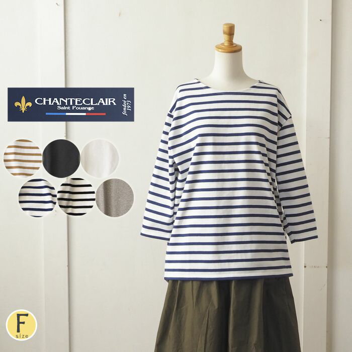 CHANTECLAIR シャントクレール ボーダーチュニックカットソー / 後ろが長い8分袖プルオーバー 天竺コットン レディース しっかり カジュアル お部屋着に ナチュラル 大人カジュアル 春 夏 ◆