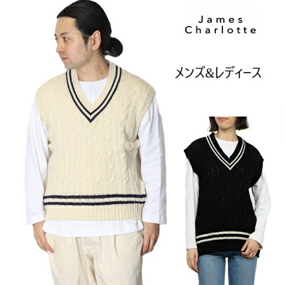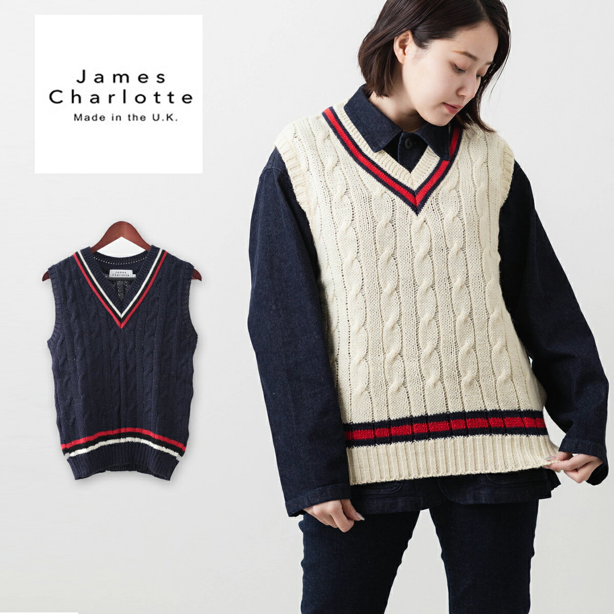 ジェームスシャルロット JAMES CHARLOTTE ニット ベスト レディース メンズ チルデンニット セーター ユニセックス Vest クリケットセーター Vネック ウール クリケット 英国製 ジェームスシャーロット ギフト トラッド チルデンセーター ゴルフウェア