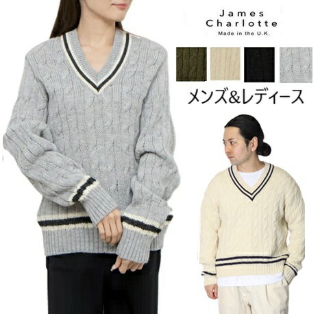 ジェームスシャルロット JAMES CHARLOTTE レディース メンズ チルデンニット セーター ユニセックス クリケットセーター Vネック ウール クリケット 英国製 Made in UK ジェームスシャーロット ギフト トラッド チルデンセーター ゴルフウェア