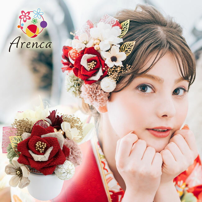 Uピン 髪飾り 16点セット Arenca シャルロット Charlotte 〈レッド〉No.8366 赤 リボン レース 薔薇 ばら バラ つまみ細工 ちりめん 和装 花 成人式 卒業式 振袖 袴 結婚式 パーティ ドレス 浴衣 ゆかた 七五三 ウェディング 洋装 アレンジ 着物 和髪 前撮り アレンカ