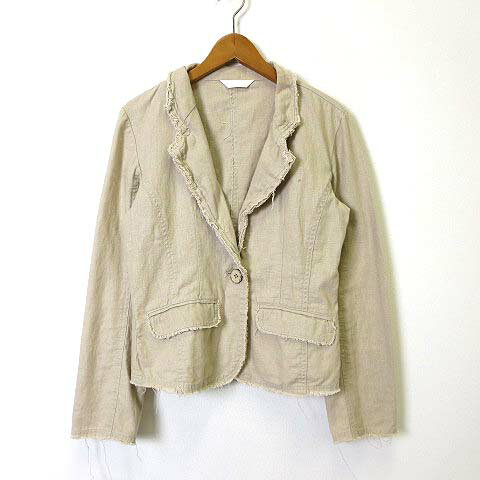 【中古】クリームクロマ cream chroma ジャケット テーラード ダメージ加工 リネン コットン 長袖 M ベージュ レディース 【ベクトル 古着】 220701