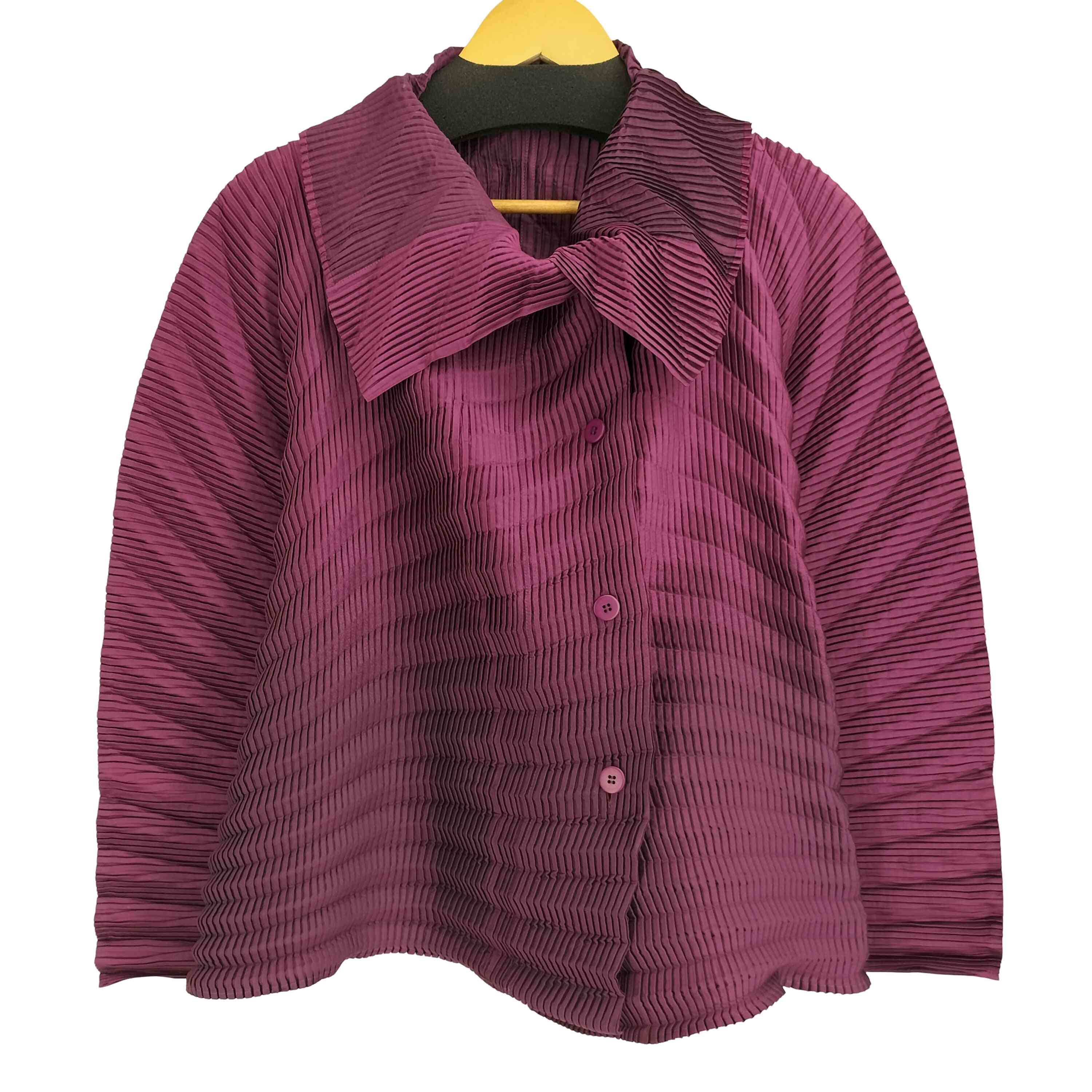 【中古】イッセイミヤケ ISSEY MIYAKE 17aw Chromatic Fantasia -極光色- CROSS PLEATED HI-NECK JACKET ウェーブプリーツ 変形ジャケット レディース 2