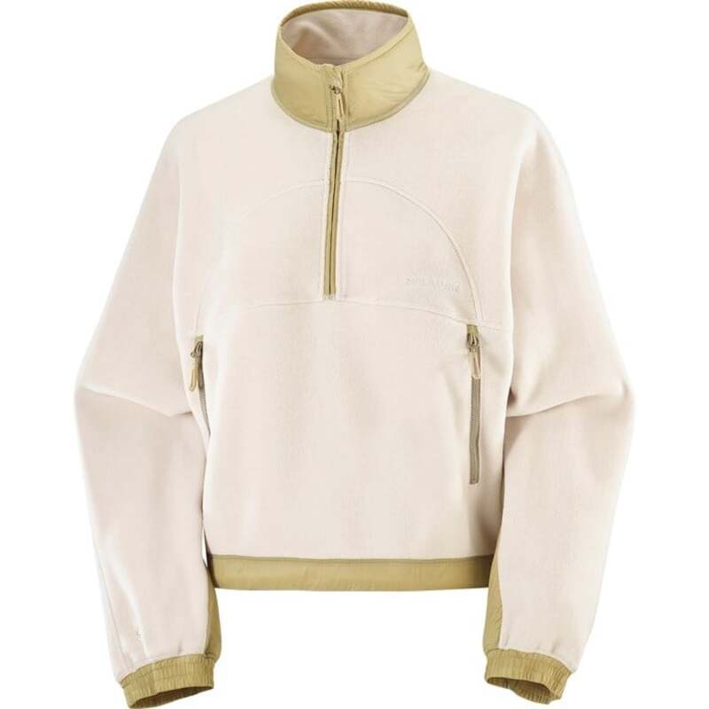 サロモン レディース アウター パーカー・スウェット ハーフジップ フリース Salomon Chroma Crop Half Zip Fleece - Women's Whisper White/Gray Green ホワイト