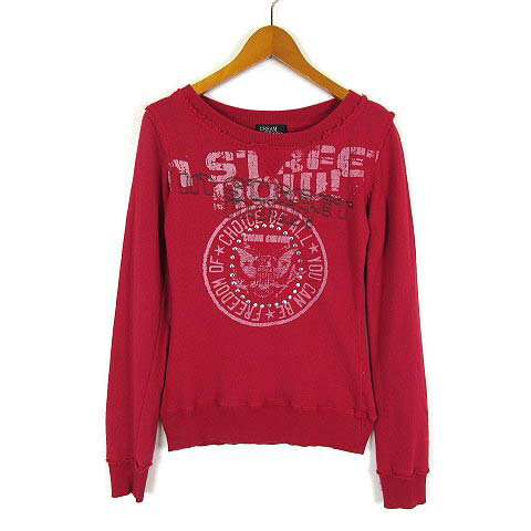 【中古】クリームクロマ CREAM CHROMA トレーナー スウェット ロゴ スタッズ ダメージ加工 コットン 長袖 M 赤 レッド オフ白 緑 グリーン レディース 【ベクトル 古着】 250907
