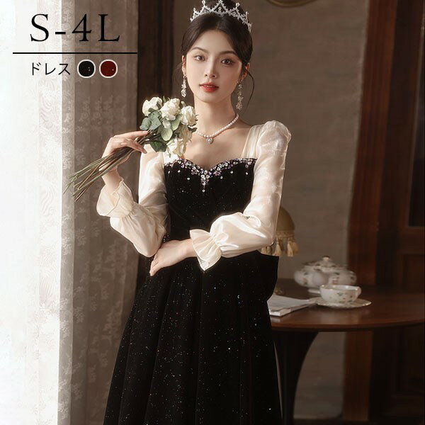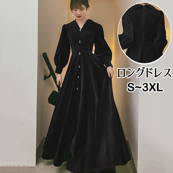 ドレス 大人 ピアノ 発表会 演奏会用ドレス ロングドレス 演奏会 イブニングドレス 結婚式 母親 ピアノ発表会 中学生 パーティードレス 発表会ドレス 袖付き 黒 高校生 大きいサイズ コンクール ロング 大きいサイズドレス ベルベット お呼ばれ Vネック S-4L dv046s1s1m3