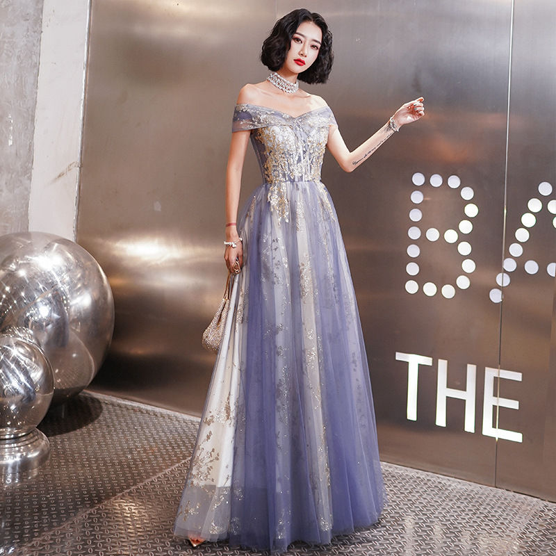 【P2倍+MAX2000円クーポン 12/11 1:59まで】カラードレス ロングドレス ブルーグレー マーメイドドレス オフショルダー 結婚式 二次会 発表会 ウェディングドレス ウエディングドレス イブニングドレス パーティードレス ステージドレス 披露宴 コンクール ブライダル