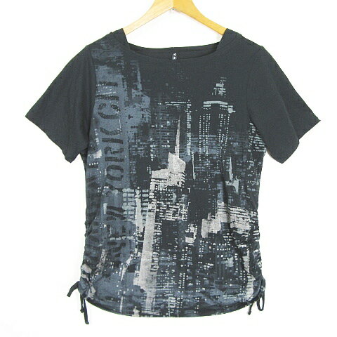 【中古】ダンスキン DANSKIN Tシャツ カットソー シャーリング 半袖 綿 M ブラック 総柄 kz13480 レディース 【ベクトル 古着】 251106