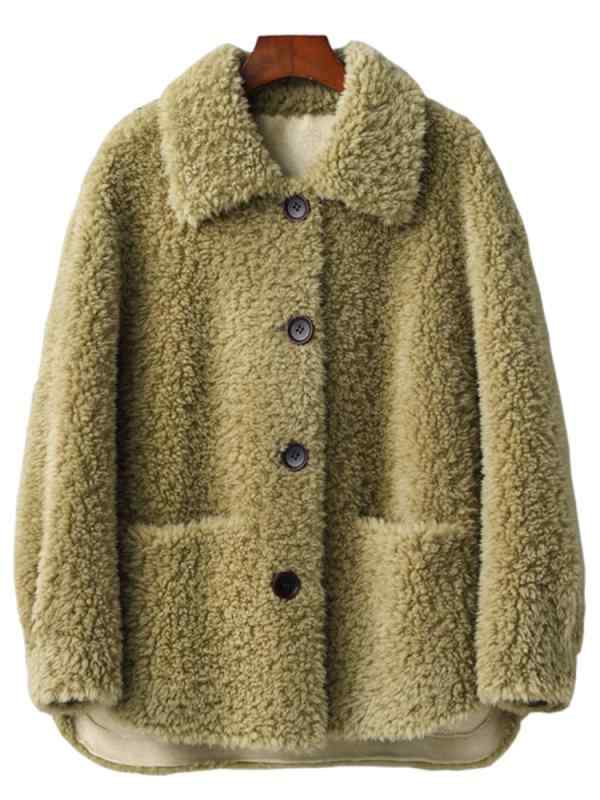 ボアジャケット レディース 秋冬 厚手 アウター コート ウール もこもこ 襟 おしゃれ 暖かい 柔らかい 快適 旅行 ショッピング お出かけ シンプル グレー 緑 紫