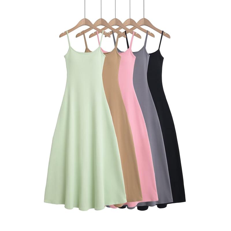 ・カテゴリ: キャミソールワンピース・スタイル: 上品エレガント・主な素材: 綿90~94%、スパンデックス6~10%・生地: ニット・ネックライン: Uネック・袖丈: ノースリーブ・スカート丈: ロング丈・ウエストタイプ: ミドルウエスト・柄: 無地・開閉部: プルオーバー・カラー展開: ブラック、チャコールグレー、カーキ、ピンク、グリーン・サイズ展開: S、M