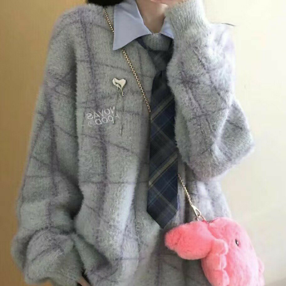 ニット セーター レディース 長袖 秋冬 チェック柄 トップス ニットセーター おしゃれ きれいめ ニットソー 秋 冬 プルオーバー ゆったり 柔らかい 暖かい 可愛い カジュアル 高校生 学生 SLUC168(S-2XL) チェックセーター 可愛い レディースセーター長袖 大きいサイズ