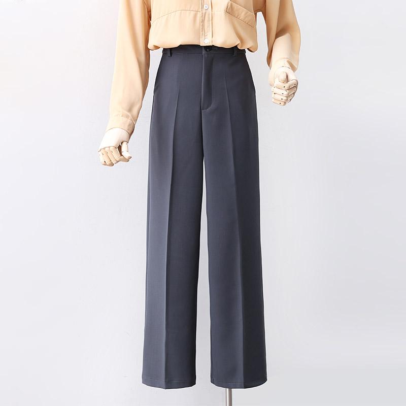 パンツ レディース 秋 春 カジュアル ボトムス ハイウエスト ワイド レッグ ストレート スーツ フロア レングス