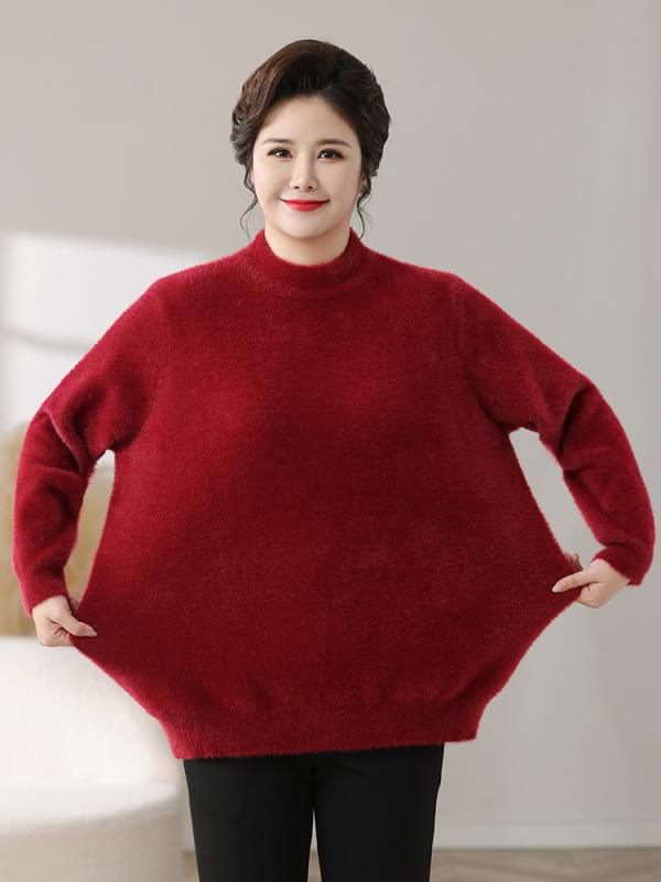 ニット ミセス 中高年女性用 秋冬 フェイクミンクファー 厚手 ハイネック 無地 ゆったり 大きいサイズ 体型カバー 長袖 暖か 上品 エレガント 普段使い お出かけ 通勤