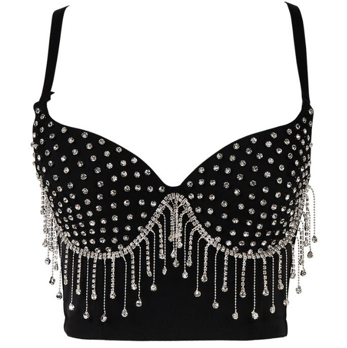 ブラトップ レディース ダンス衣装 ブラジャー スパンコール フリンジ付き ビーズ付き ダンスブラ キャミソール タンクトップ ジャズ DS バー 舞台演出服 ブラ ブラック ホワイト