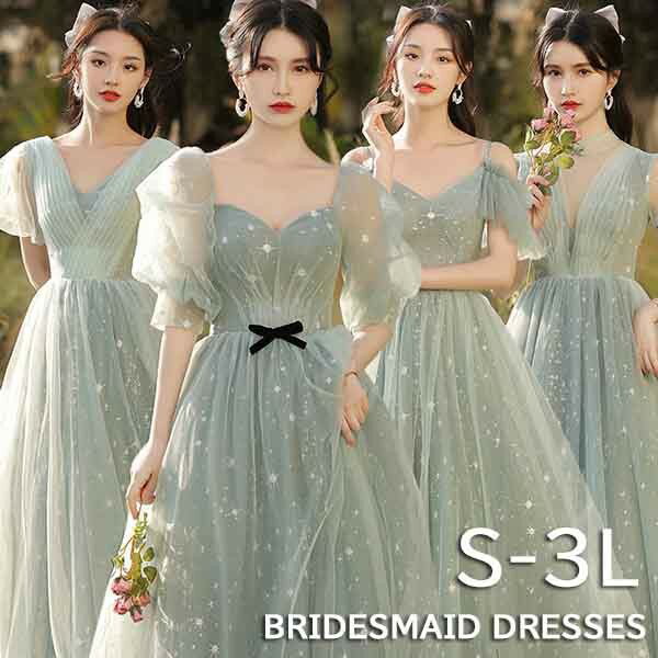 ブライズメイド ドレス ロング丈 袖付き フリル 透明感あり オフショルダー パフスリーブ Vネック ドレス 大人 ピアノ 発表会 結婚式ワンピース 二次会 大きいサイズ 結婚式 体型カバー 半袖 謝恩会 二次会 卒業式 花嫁 演奏会 20代 30代 ds161ze
