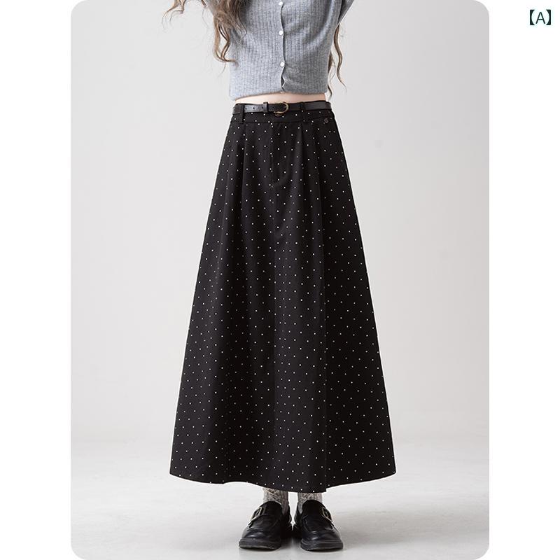 ドット柄スカート レディース 黒の ドットの ハイウエスト スリム aライン ロング スカート レディース 春夏小 ヒップ カバー ビッグ スイング
