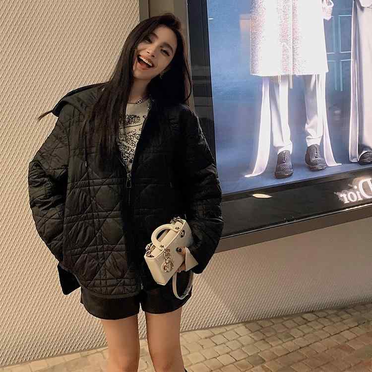 キルティング コットン ジャケット 韓国 風の ゆったり ダイヤモンド フード 付き コットン コート レディース 2024 秋 冬 新作 デザイン ニッチ 暖かい ジャケット トップス