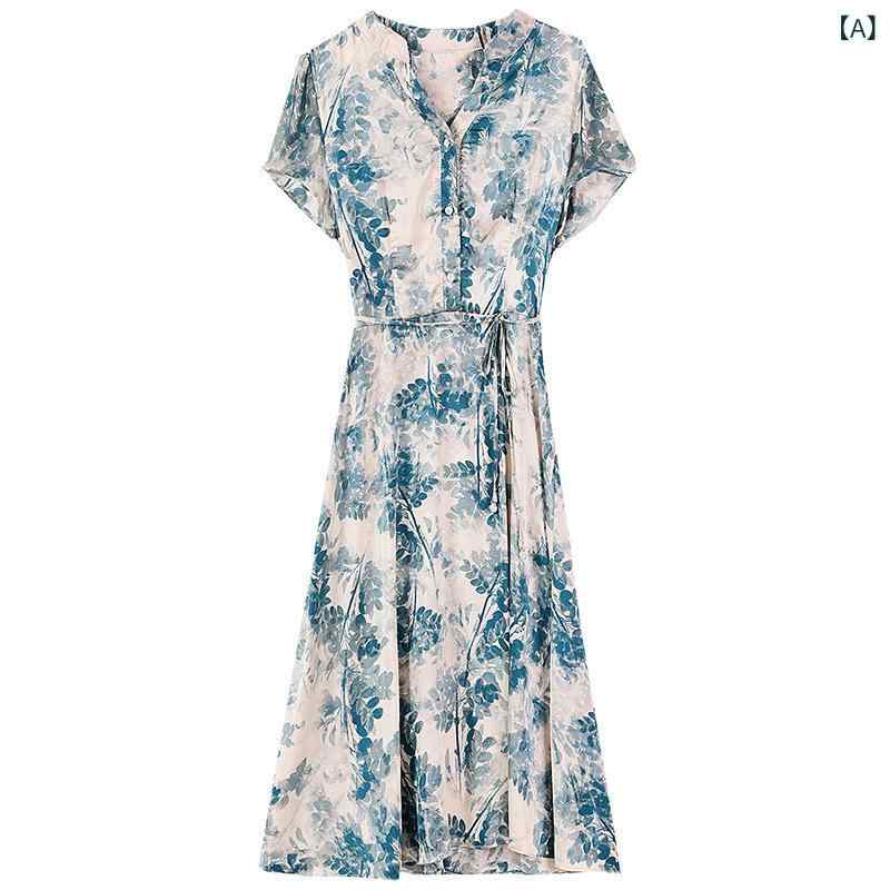 ワンピース レディース 春夏 半袖 Vネック 花柄 Aライン 膝丈 チュニック ゆったり 着痩せ 体型カバー シフォン 接触冷感 普段使い 通勤 オフィス 旅行 リゾート お呼ばれ 二次会 パーティー