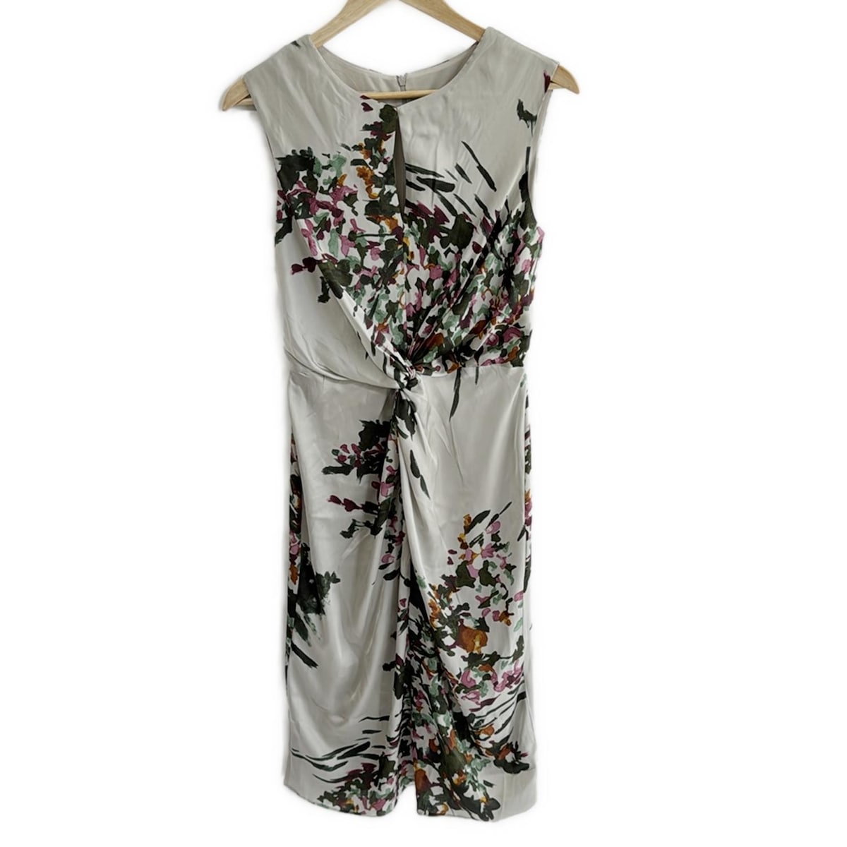 【新着】【中古】LAURAASHLEY(ローラアシュレイ) ワンピース ノースリーブ/ひざ丈/花柄 ライトグレー×ダークグリーン×マルチ