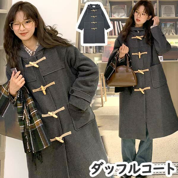 ダッフルコート レディース 冬コート ロングコート 無地 アウター カジュアル フード付き 女性 ファッション 大人 可愛い かわいい ダークグレー 灰色 通勤 通学 シンプル ec183t2t2g5
