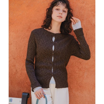 ティティベイト titivate コンパクトリブニットカーディガン (ダークブラウン)