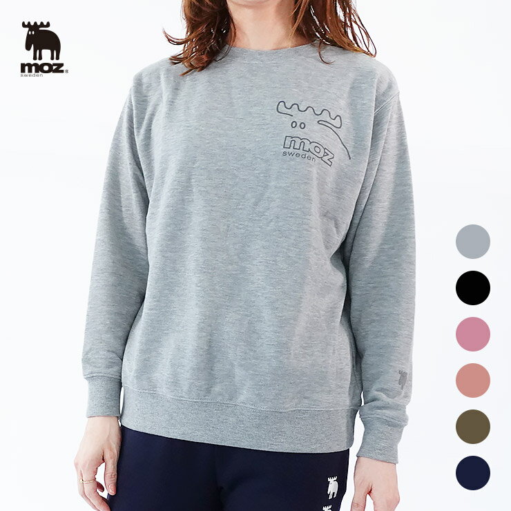 moz sweden クルーネック プルオーバー ( モズ 北欧 公式 トレーナー レディース スウェット 長袖 ミニ裏毛 大きいサイズ 杢グレー グレー ブラック ピンクベージュ ローズピンク ダークカーキ ネイビー M L LL )