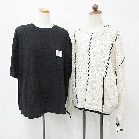 【中古】未使用品 クラシカルエルフ Classical Elf アドレセンス ADOLESCENCE ニット Tシャツ 2枚セット 長袖 半袖 丸首 リボン アイボリー 黒 ブラック M F レディース 【ベクトル 古着】 251014