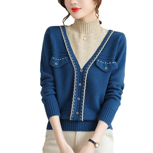 [NONELECEDOLE]セーターレディースニットトップスハーフハイネック長袖バイカラーフェイクツーピースプルオーバー暖かいファッションカジュアル大人スタイルファッション通勤秋冬