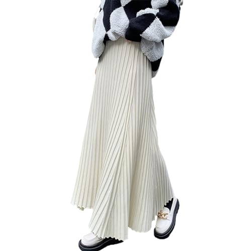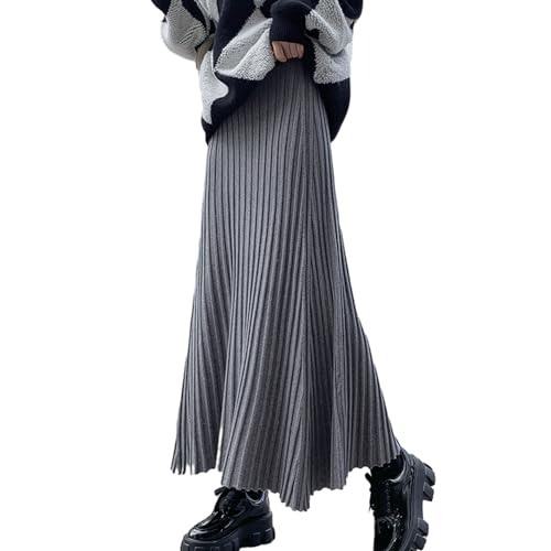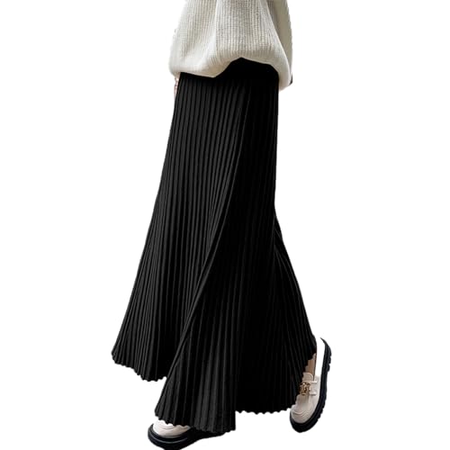 [NONELECEDOLE] ニットスカート プリーツスカート レディース ロングスカート 厚手 Aライン 体型カバー 着痩せ 無地 ハイウエスト ゴムウエスト かわいい 通勤 秋 冬