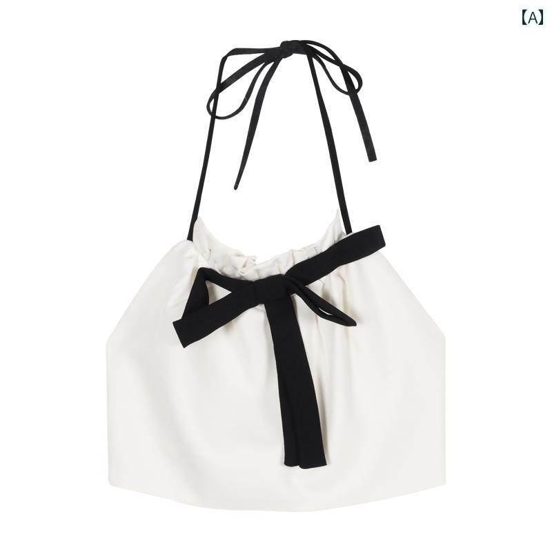 レディース トップス ホルターネック レディース トップス ホルターネック ホット ガール ホルターネック 黒 弓 サスペンダー 背中の 開いた スリム トップ レディース 夏の フレンチ ノースリーブ ショート アウターベスト
