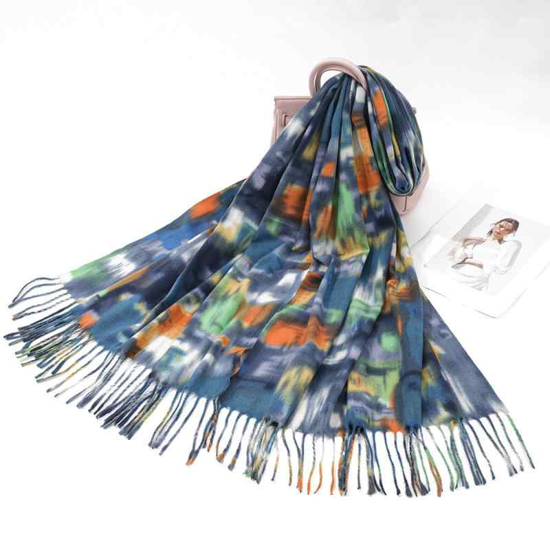 ショール レディース 保温 あったか 防寒 フェイクカシミヤ ポリエステル タイダイ染め レトロ プリント 配色 個性的 ロング 大判 ストール マフラー カジュアル オフィス ファッション ブルー(x2)