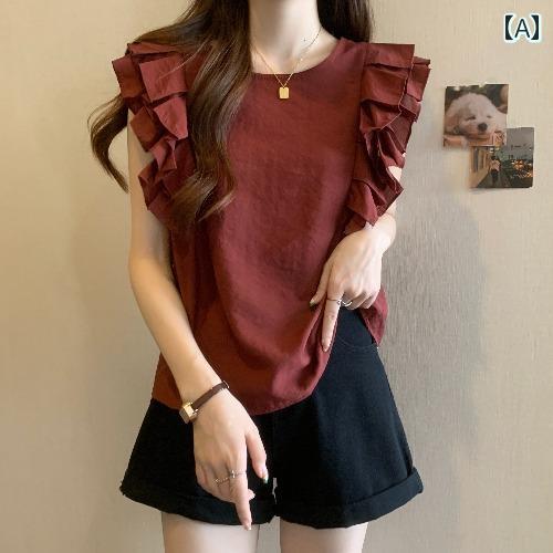 夏の 女性の ための 大きい サイズの フリル 半袖 シャツ、 脂肪 mmの 痩 身と 肉 カバー デザイン、 ニッチな フレンチスタイルの小さな フライング スリーブ トップブランド: その他/その他対象年齢:18~35歳サイズ: M、L、XL、2XL、3XL、4XL生地: その他柄:無地スタイル: 通勤用通勤:韓国語襟のタイプ:ラウンドネックメインカラー:ワインレッド、アプリコット、ブラック袖のタイプ:蓮の葉袖商品番号: TTパターン文化:創造性適用季節:夏年シーズン: 2024年夏袖丈:半袖厚さ:レギュラー長さ: レギュラー服装バージョン:ストレートタイプ素材構成: その他 100