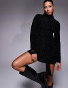 【送料無料】 エイソス レディース ワンピース トップス ASOS DESIGN sparkle tie waist skater mini dress in black Black